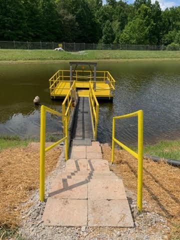 GEF can fabricate floating docks. This application was in a power plant pond.